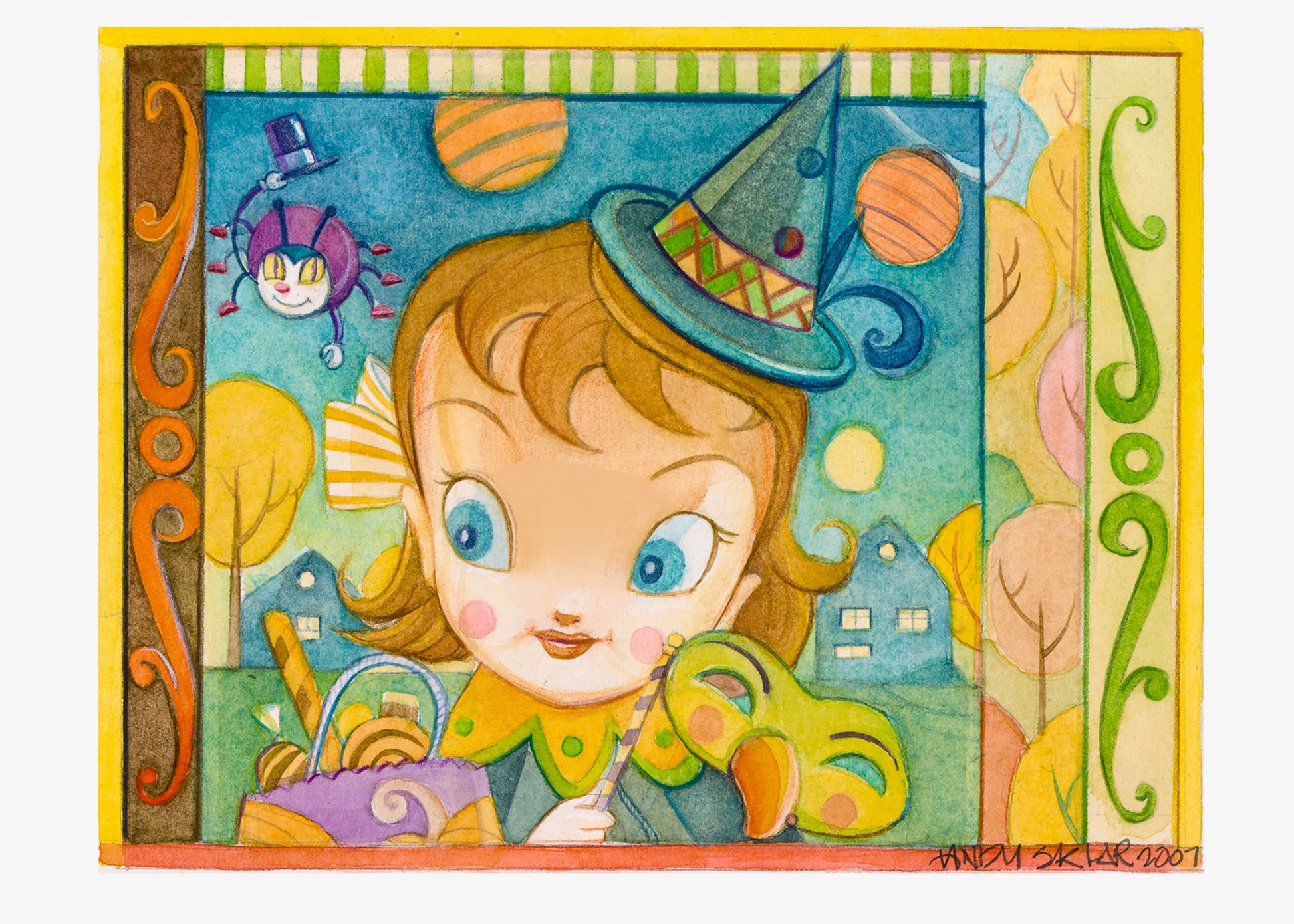 This Little Witch radiates retro magic with her whimsical expression and colorful witch costume.