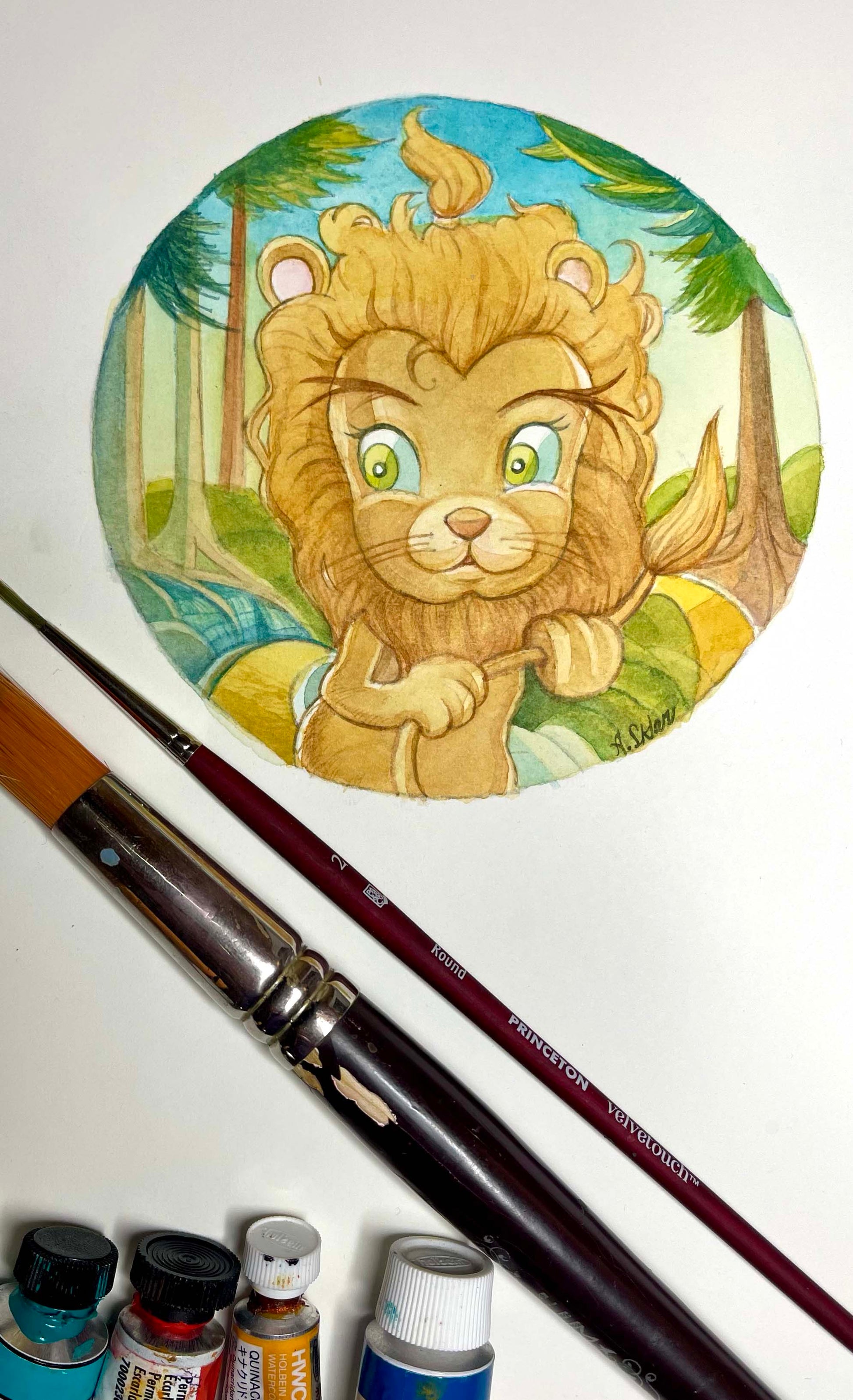 The Lion's sweet expression adds a sense of whimsy and endearment, capturing his gentle spirit.